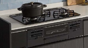 ビルトインガスコンロは コンロ全体とコンロ下部↓キャビネット(オーブン)部分 および、キャビネット内部にあります、ガスの接続部分の撮影をお願いいたします