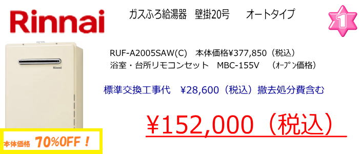 | リンナイ | RUF-A2005AW(C) | \432,410(税込) | \169,323 |