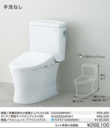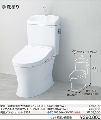 便器YBC-Z30S 定価¥68,970(税込)¥62,700(税抜) タンク(手洗いなし)DT-Z350 定価\64,680(税込)¥58,800(税抜 |