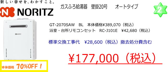 | ノーリツ | GT-2070AW BL | \431,200(税込) | \194,000 |