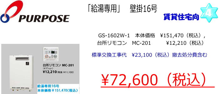 屋外壁掛け給湯器 16号 「給湯専用」 ![]() |